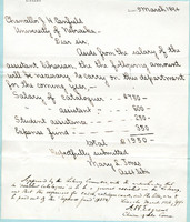 Department and professor list for College of Literature Science, and Arts and the Industrial College, provided by J.S. Dales, Board of Regents secretary during the period when Charles Bessey served as acting chancellor.