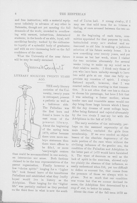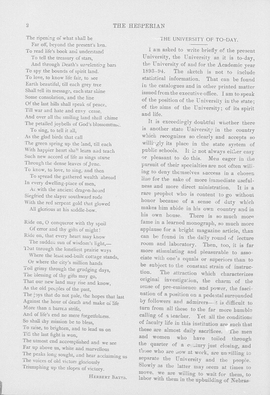 In the Hesperian published on Charter Day, February 15, 1894, Chancellor James H. Canfield writes an overview of the University of Nebraska-Lincoln and its purpose as an institution.