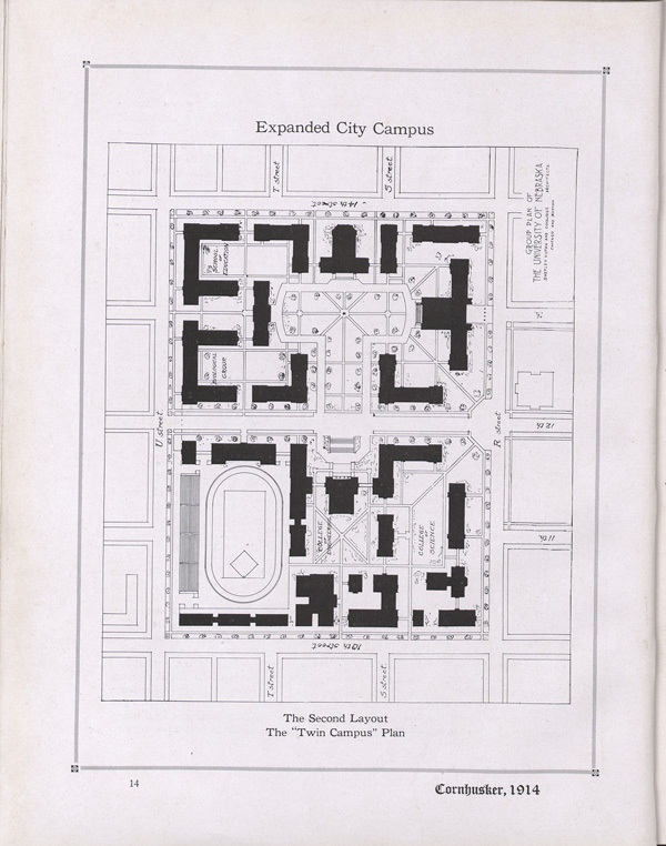 - Taken from the 1914 Cornhusker, this layout depicts the second of two plans for city campus expansion at the University of Nebraska-Lincoln.