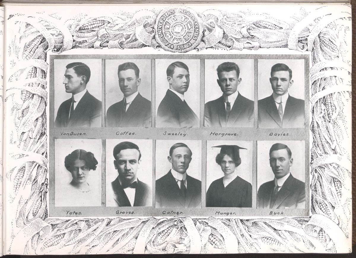 Top left to bottom right: Dana Van Dusen, Harry Coffee, Ralph Sweeley, Mark Hargrave, Rex Davies, Katherine Yates, Ernest Graves, Samuel Cotner, Ruth Munger, Sam Buck. - Original Format