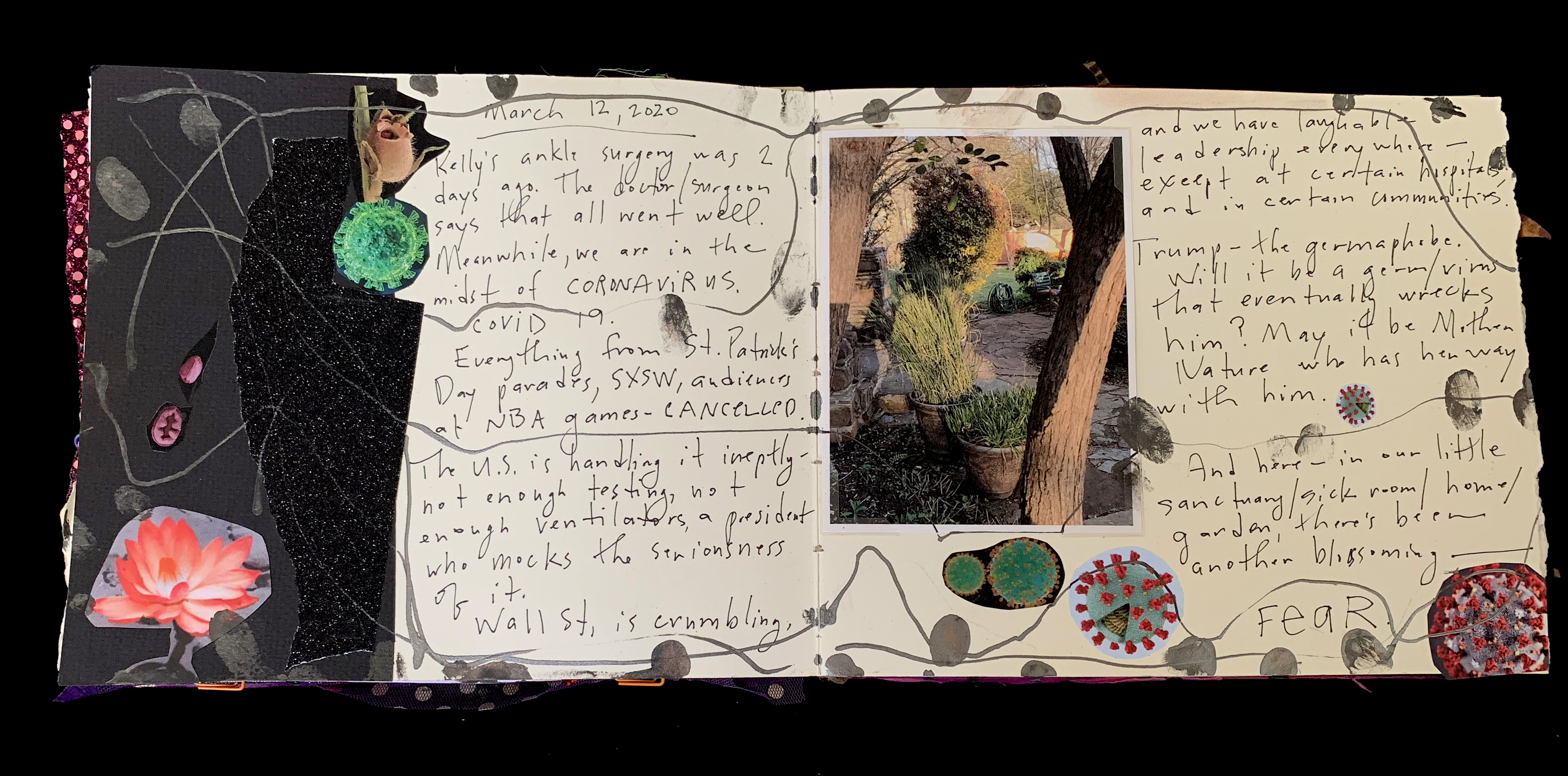 - Great Blossoming; 29 Pieces; Origin story; 15-year anniversary; Covid-19 pandemic; Ankle replacement; Lockdown; Seeds; Garden metaphors; Shitstorm; Lotus blossom; Viral spread; Human care; Kelly’s surgery; Pandemic awareness; Lincoln NE; UNL library project; Frustrations; Phoebe Little; Yale admission; Shelley Thornton; Weeds; Coronavirus genome; Darkness; Recalibration; Post-surgery care; Joy of reading; Lynda II Gordon; Emily Dickinson biography; Lockdown struggles; Daily walks; Neighborhood photography; Grey days; Meditation group; Artistic survival tips; Vision and ethics; End of normal life; Growth cycle; Pandemic virus; Strength components; Tribal identity; National identity; Art from past pandemics; Human contact; Compassion; Sources of inspiration; Hilma af Klimt; Spiritual inspiration; The volcano blew