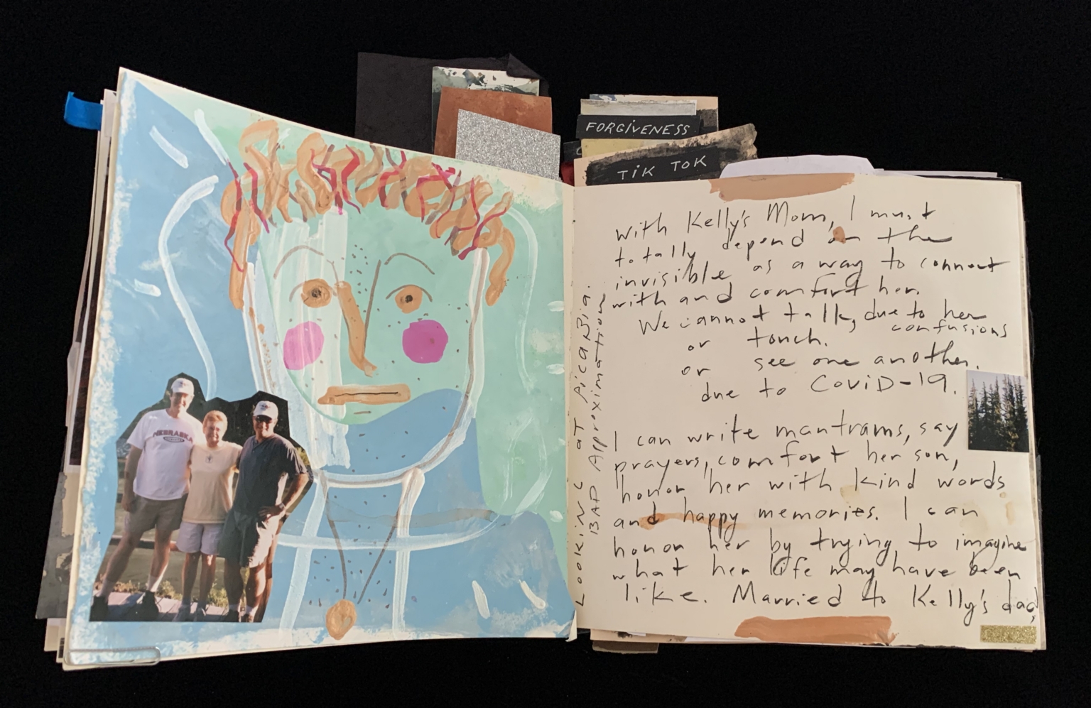 - with Kelly's Mom, I must totally depend on the invisible as a way to connect with and comfort her. We cannot talk, confusions or touch or see one another due to COVID-19. I can write mantrams, say prayers, comfort her son, honor her with kind words and happy memories. I can honor her by trying to imagine what her life may have been like. Married to Kelly's dad.