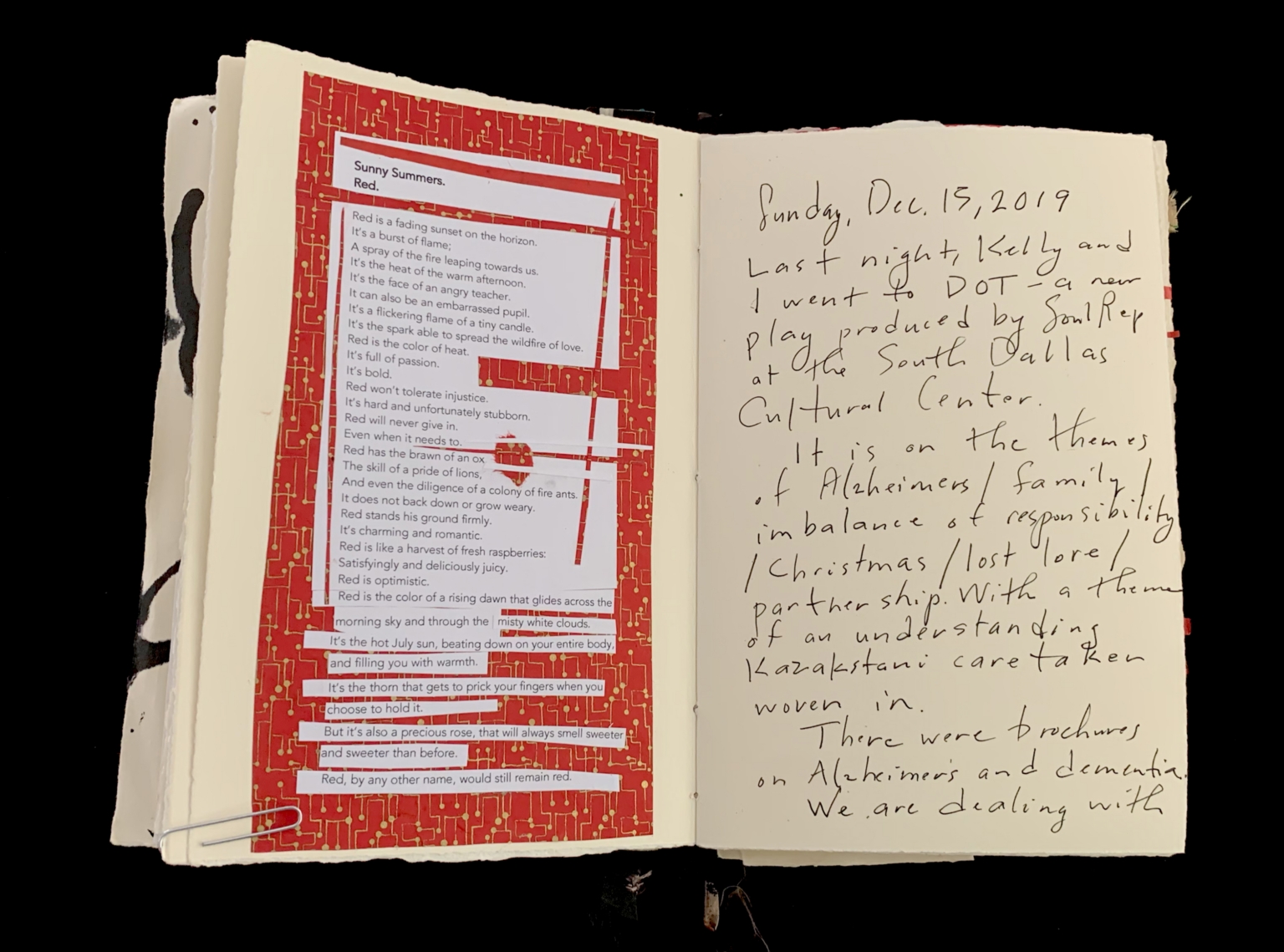 Right Page: "Sunday, Dec. 15, 2019 Last night, Kody and I went to DOT- a new play produced by Soul Rep at the South Dallas Cultural Center.