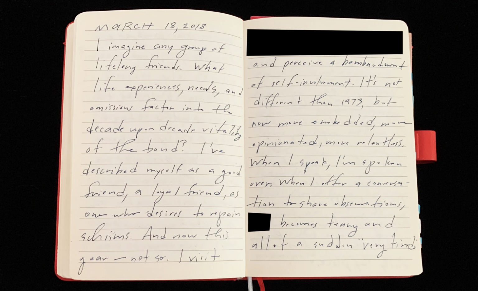 - I haven't spoken with [redacted] since September 2017. [Redacted] and moves. I am so saddened by this that I cannot see her face to face. Most likely, I will never see her again. I was very saddened to understand fully "my place."I haven't spoken with [blacked out] since September 2017. [blacked out] [blacked out] [blacked out] and moves. And I am so saddened by this that I cannot see her face to face. Most likely, I will never see her again. I was very saddened to understand fully "my place," [blacked out] and I were to spend an afternoon and evening together in [blacked out], and after the boat trip, she leaves to have coffee with [blacked out]. I am left on my own. This should have been no surprise, as it has always been this screwy and manipulative way.
