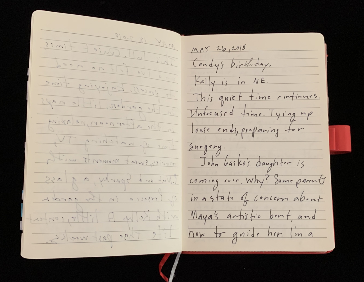 - MAY 26, 2018 Candy's birthday. Kelly is in NE. This quiet time continues. Unfocused time. Tying up loose ends, preparing for surgery. John Gaskos' daughter is coming over. Why? Some parents in a state of concern about Maya's artistic bent, and how to guide her. I'm a