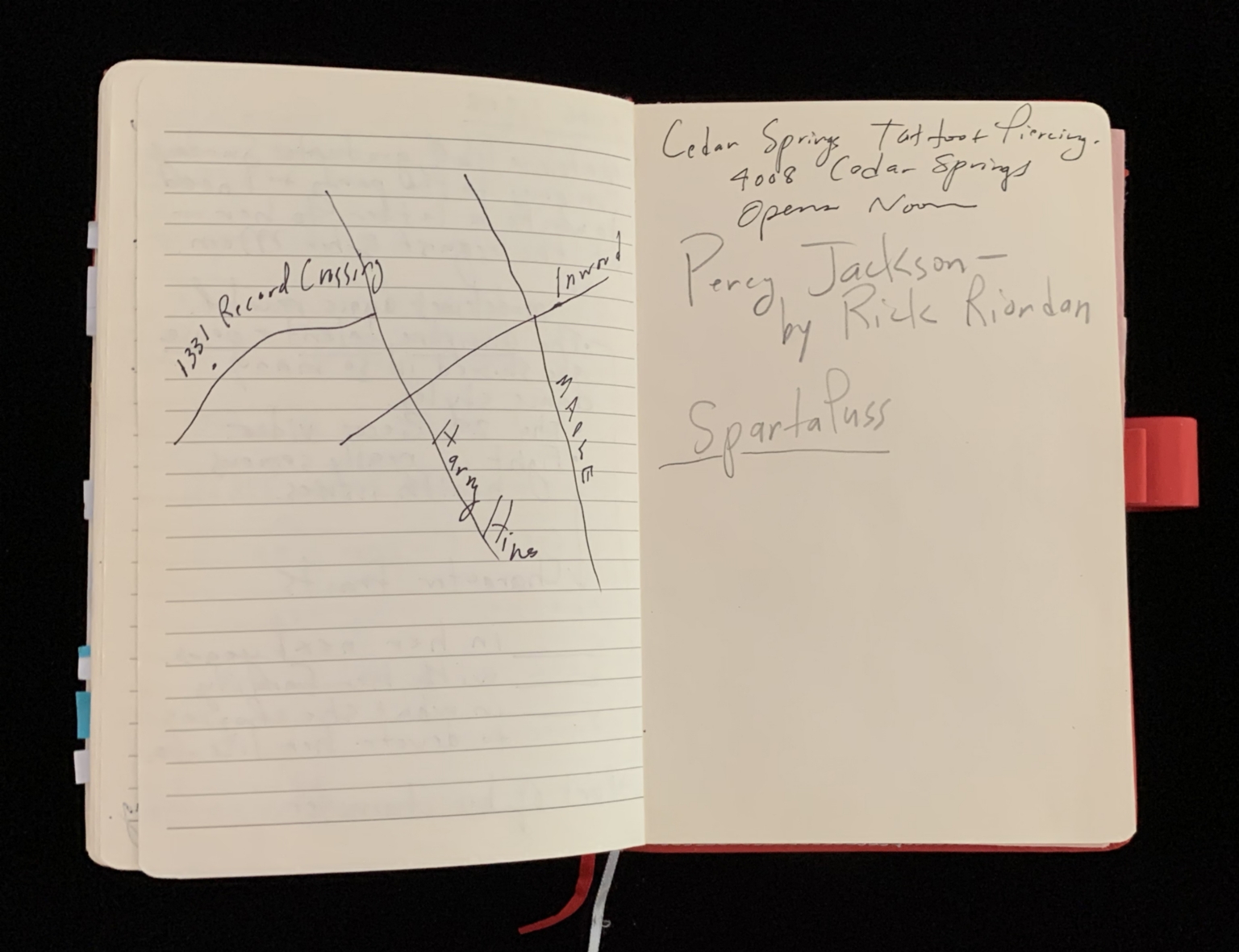 Right Page: Cedar Springs Tattoo + Piercing 4008 Cedar Springs Opens Noon Percy Jackson by Rick Riordan SpartaPuss - Rights