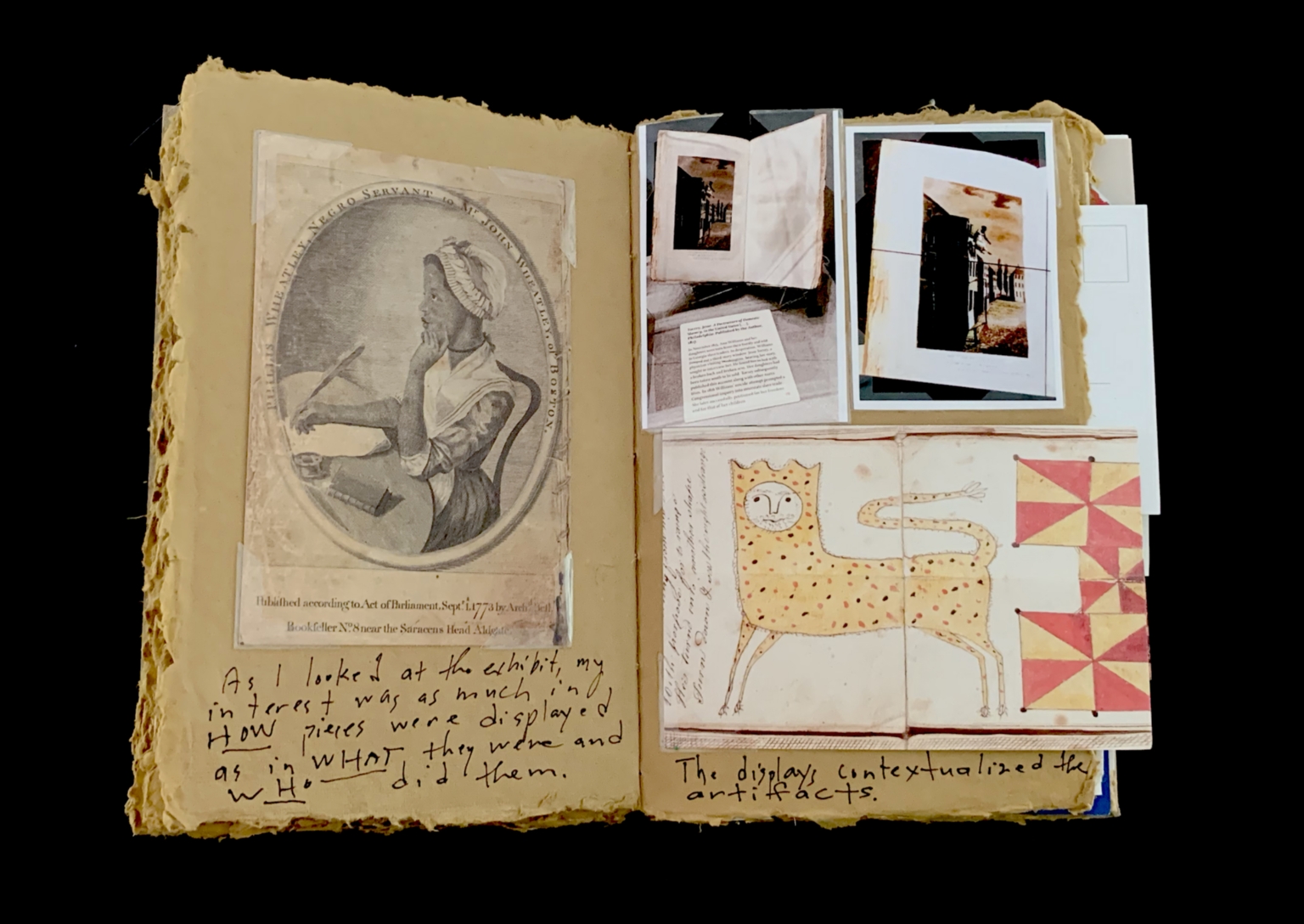 Handwritten below engraving: "As I looked at the exhibit, my interest was as much in HOW pieces were displayed as in WHAT they were and WHO did them."