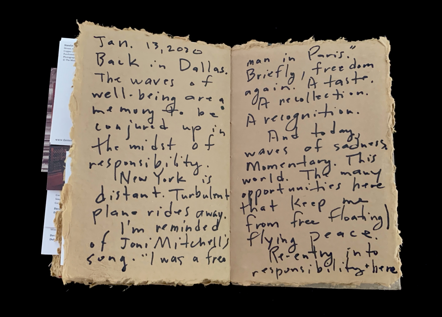 - 2020; New decade; Chart; Road metaphor; Bricks; Mortar; Rest stops; Dangers; Human body; Mortality; Poignancy; Connections; Sadness; Grief; Aging; Australia fires; Horror of 2020; $81,000 grant; Trust for Public Land; Texas Trees Foundation; Jonathan McNulty; David McNulty; Murder; Wounds; Baby elephants; Dream; “You are unstoppable”; NYC trip; FIVE HUNDRED YEARS OF WOMEN’S WORK; Lisa Unger Baskin Collection; Grolier Club; NYC libraries; Book display; Collections; Researchers; Lisa Unger Baskin; Magical day; Well being; New York Public Library; J.D. Salinger exhibit; Made at NYPL exhibit; Wallace Shawn; Artifact display; Book binding; Women in France; Inexplicable well being; Wave not the water; Broadway; Central vein; Long leaf; Walking; Orthopedic surgeries; Morgan Library; Duane Michals; Word and Image; NYPL; Animal skin fortune; Met Breuer; Home is a Foreign Place; Jody Shields; Metropolitan Museum; Friday evening; Cafe Sabarsky; Free man in Paris; Recollection; Recognition of freedom; Responsibility; Central Park; Beacon Hotel; Room with a view; Magic; Best Small Garden award; Dallas