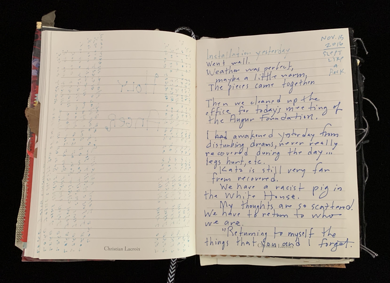 - Gold; Symbol of divinity; Symbol of superficiality; Artifice; Suicide; Jack E. Davis; Friend; Illustrator; Artist; From Here to There collages; John Katz; Open heart surgery; Mantram pages; Prayer pages; Friends; Family; 29 Pieces; Sixth Floor Museum; Dealey Plaza; Pulitzer Centennial; Dallas; Texas Theatre; War photographers; David Kennerly; Carol Guzy; Nick Ut; Heidi Levine; David Leeson; Bob Jackson; Bill Lohr; Tractor accident; Prayers; Focus; Energy; Enthusiasm; Bowl of Joy; Chart; Block negatives; Piece 24; Sculpture installation; Messaging; Stress; Joy; Obstacles; Fulfillment; Calm; Frustration; Anger; Slow; Curious; Intelligence; Bright; Joyful; Magical; Beautiful; Pain; Sleeplessness; Agitation; Despair; Hillary; Trump; Election; Mudslinging; Irresponsible press; Donald Trump; Mercy; Condemnation; Deaths; Surgeries; Artist conflict; Human beings; Divine flames; Cancer upon the earth; Divided country; 1960s; Family arguments; Aftermath of election; Emotions; Fury; Disbelief; Sickening realization; Public art challenges; Racism; Misogyny; White House; Palpable fury; On the ledge; Vicki Millican; Accident; Ceiling fall; Internal injuries; Call all angels; Restore Vicki Millican; Peacemaker of the Year; Peace; Volcano inside; Human spirit; Revenge with beauty; Outrage; Love