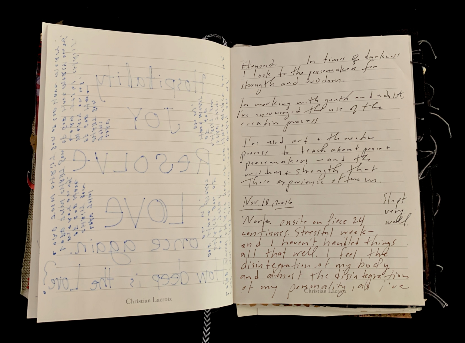 - Gold; Symbol of divinity; Symbol of superficiality; Artifice; Suicide; Jack E. Davis; Friend; Illustrator; Artist; From Here to There collages; John Katz; Open heart surgery; Mantram pages; Prayer pages; Friends; Family; 29 Pieces; Sixth Floor Museum; Dealey Plaza; Pulitzer Centennial; Dallas; Texas Theatre; War photographers; David Kennerly; Carol Guzy; Nick Ut; Heidi Levine; David Leeson; Bob Jackson; Bill Lohr; Tractor accident; Prayers; Focus; Energy; Enthusiasm; Bowl of Joy; Chart; Block negatives; Piece 24; Sculpture installation; Messaging; Stress; Joy; Obstacles; Fulfillment; Calm; Frustration; Anger; Slow; Curious; Intelligence; Bright; Joyful; Magical; Beautiful; Pain; Sleeplessness; Agitation; Despair; Hillary; Trump; Election; Mudslinging; Irresponsible press; Donald Trump; Mercy; Condemnation; Deaths; Surgeries; Artist conflict; Human beings; Divine flames; Cancer upon the earth; Divided country; 1960s; Family arguments; Aftermath of election; Emotions; Fury; Disbelief; Sickening realization; Public art challenges; Racism; Misogyny; White House; Palpable fury; On the ledge; Vicki Millican; Accident; Ceiling fall; Internal injuries; Call all angels; Restore Vicki Millican; Peacemaker of the Year; Peace; Volcano inside; Human spirit; Revenge with beauty; Outrage; Love