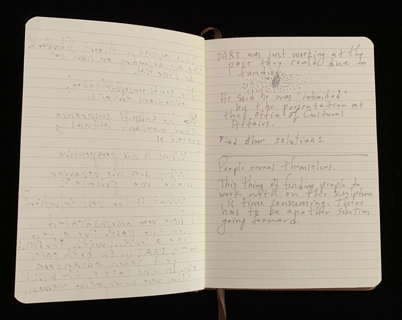 - Mantram pages; Beseeching the divine; Orlando shooting; Feeling abandoned; Distance from God; Moral high ground; American hypocrisy; Drone strikes; President Obama; Collateral damage; Piece 24 presentation; City of Dallas; Bryn the Corgi; Pet loss; Euthanizing dog; Grief; Presentation aftermath; Mass shooting; Public Art Committee; Approval of Piece 24; Quiet house; Hosting dinner; Kelly in Nebraska; Helping his Mom; Inner calling; Tanya Conovaloff surgery; Roxana health emergency; July remembrances; Barbara’s death; Mom’s birthday; Family picnics; Communion of grief; Police shooting; 29 Pieces messaging; Will to be better; Raw grief; One pure language; Hazrat Khan quote; Nice France violence; Baton Rouge killings; Mercy; History repeating; Pulitzer Centennial; War photographer questions