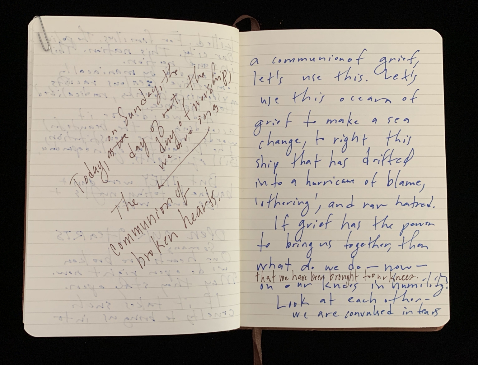 - Mantram pages; Beseeching the divine; Orlando shooting; Feeling abandoned; Distance from God; Moral high ground; American hypocrisy; Drone strikes; President Obama; Collateral damage; Piece 24 presentation; City of Dallas; Bryn the Corgi; Pet loss; Euthanizing dog; Grief; Presentation aftermath; Mass shooting; Public Art Committee; Approval of Piece 24; Quiet house; Hosting dinner; Kelly in Nebraska; Helping his Mom; Inner calling; Tanya Conovaloff surgery; Roxana health emergency; July remembrances; Barbara’s death; Mom’s birthday; Family picnics; Communion of grief; Police shooting; 29 Pieces messaging; Will to be better; Raw grief; One pure language; Hazrat Khan quote; Nice France violence; Baton Rouge killings; Mercy; History repeating; Pulitzer Centennial; War photographer questions