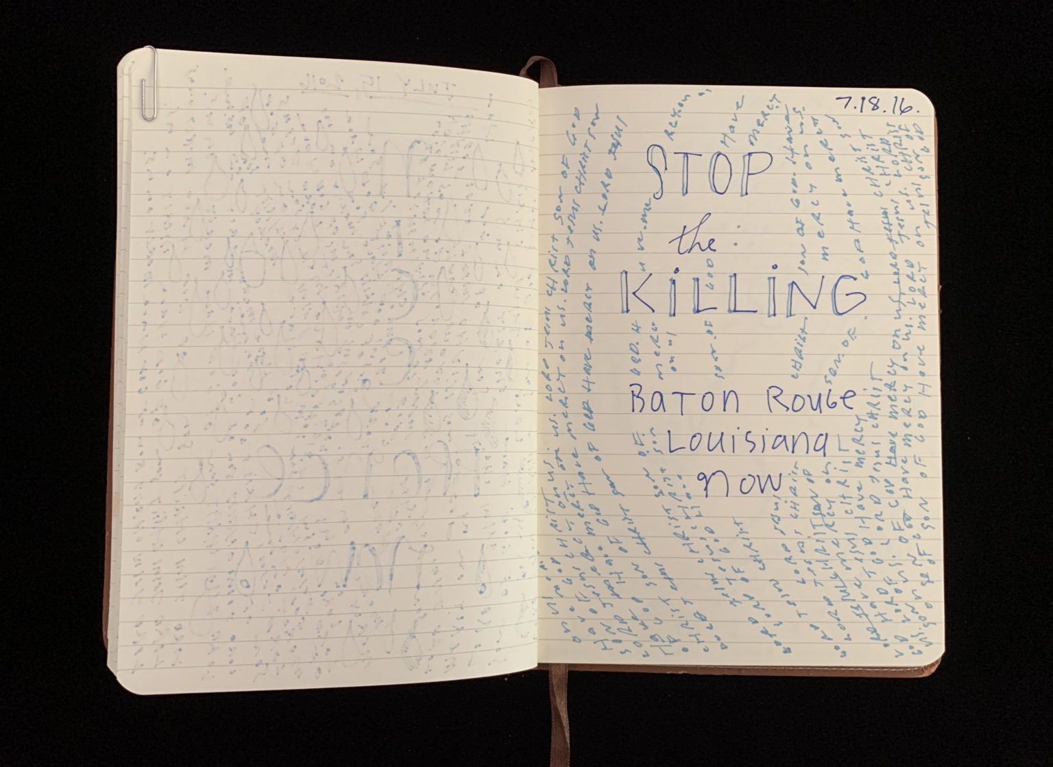 - Mantram pages; Beseeching the divine; Orlando shooting; Feeling abandoned; Distance from God; Moral high ground; American hypocrisy; Drone strikes; President Obama; Collateral damage; Piece 24 presentation; City of Dallas; Bryn the Corgi; Pet loss; Euthanizing dog; Grief; Presentation aftermath; Mass shooting; Public Art Committee; Approval of Piece 24; Quiet house; Hosting dinner; Kelly in Nebraska; Helping his Mom; Inner calling; Tanya Conovaloff surgery; Roxana health emergency; July remembrances; Barbara’s death; Mom’s birthday; Family picnics; Communion of grief; Police shooting; 29 Pieces messaging; Will to be better; Raw grief; One pure language; Hazrat Khan quote; Nice France violence; Baton Rouge killings; Mercy; History repeating; Pulitzer Centennial; War photographer questions