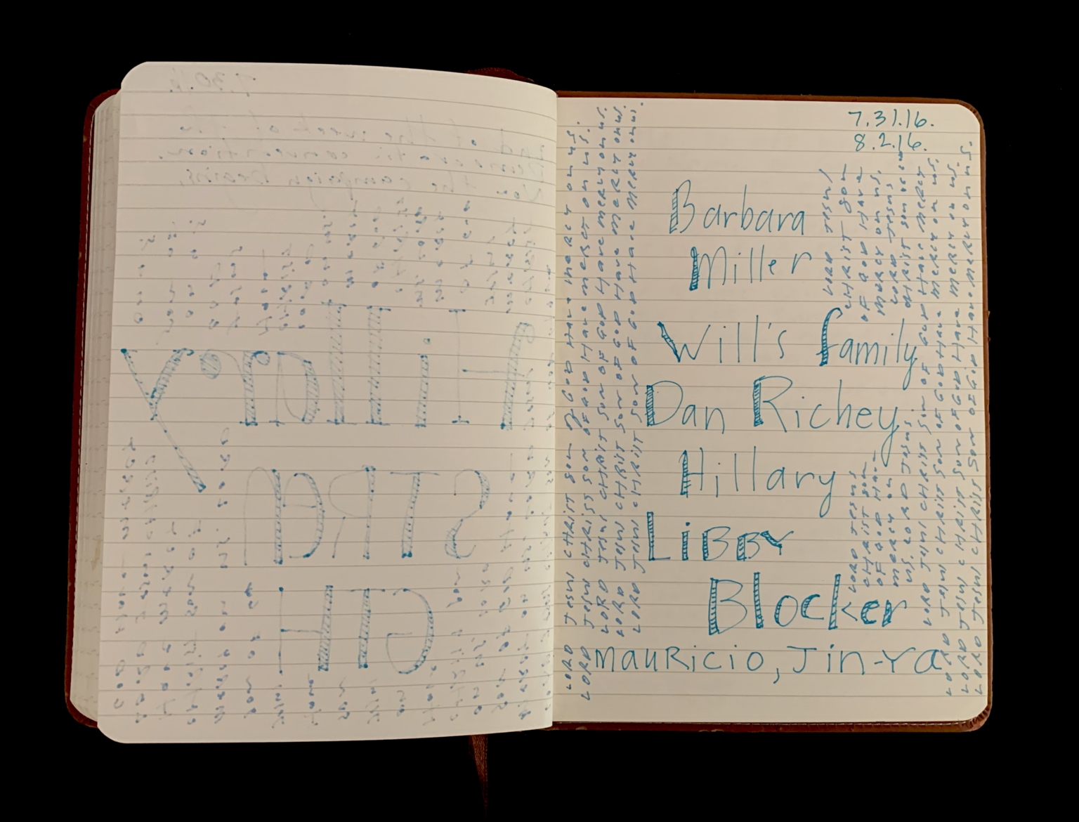 - Mantram pages; Beseeching the divine; Orlando shooting; Feeling abandoned; Distance from God; Moral high ground; American hypocrisy; Drone strikes; President Obama; Collateral damage; Piece 24 presentation; City of Dallas; Bryn the Corgi; Pet loss; Euthanizing dog; Grief; Presentation aftermath; Mass shooting; Public Art Committee; Approval of Piece 24; Quiet house; Hosting dinner; Kelly in Nebraska; Helping his Mom; Inner calling; Tanya Conovaloff surgery; Roxana health emergency; July remembrances; Barbara’s death; Mom’s birthday; Family picnics; Communion of grief; Police shooting; 29 Pieces messaging; Will to be better; Raw grief; One pure language; Hazrat Khan quote; Nice France violence; Baton Rouge killings; Mercy; History repeating; Pulitzer Centennial; War photographer questions