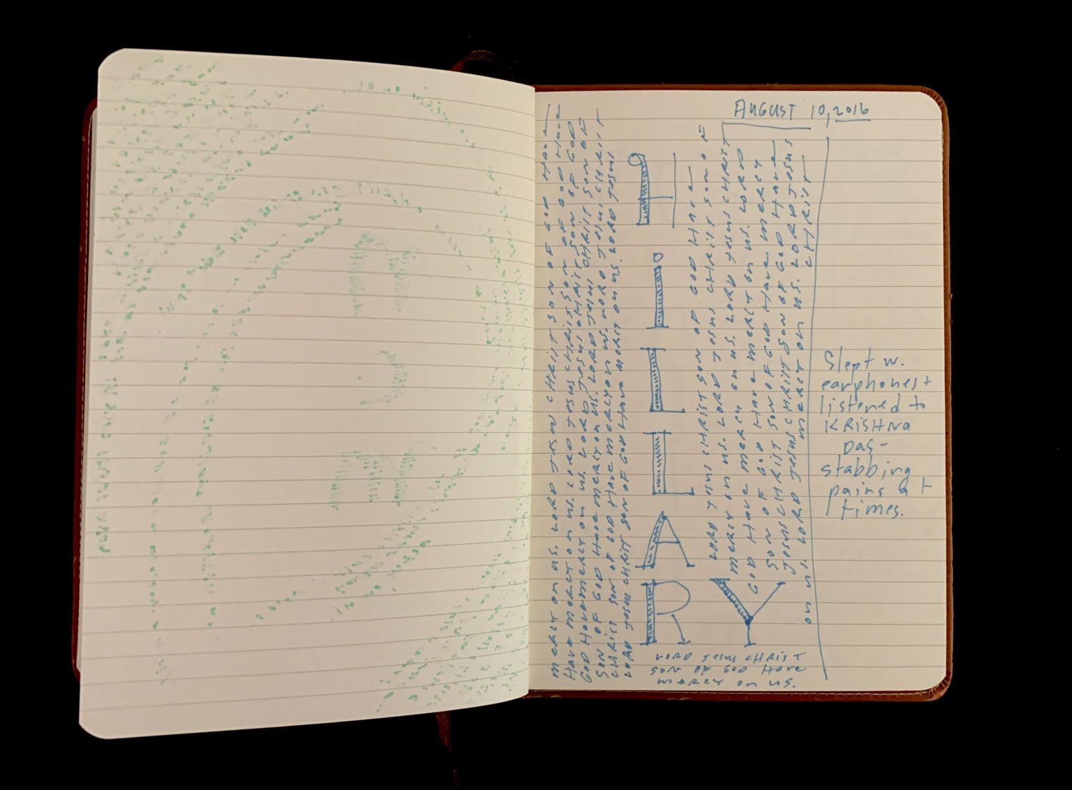 - Mantram pages; Beseeching the divine; Orlando shooting; Feeling abandoned; Distance from God; Moral high ground; American hypocrisy; Drone strikes; President Obama; Collateral damage; Piece 24 presentation; City of Dallas; Bryn the Corgi; Pet loss; Euthanizing dog; Grief; Presentation aftermath; Mass shooting; Public Art Committee; Approval of Piece 24; Quiet house; Hosting dinner; Kelly in Nebraska; Helping his Mom; Inner calling; Tanya Conovaloff surgery; Roxana health emergency; July remembrances; Barbara’s death; Mom’s birthday; Family picnics; Communion of grief; Police shooting; 29 Pieces messaging; Will to be better; Raw grief; One pure language; Hazrat Khan quote; Nice France violence; Baton Rouge killings; Mercy; History repeating; Pulitzer Centennial; War photographer questions