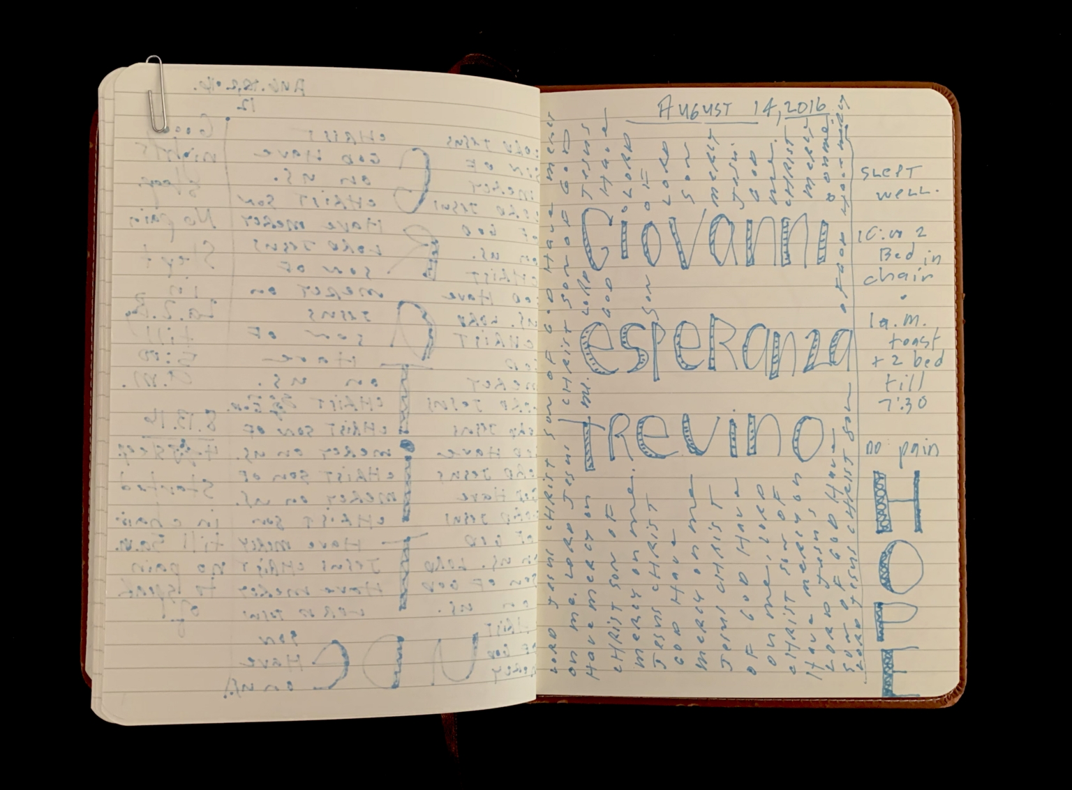 - Mantram pages; Beseeching the divine; Orlando shooting; Feeling abandoned; Distance from God; Moral high ground; American hypocrisy; Drone strikes; President Obama; Collateral damage; Piece 24 presentation; City of Dallas; Bryn the Corgi; Pet loss; Euthanizing dog; Grief; Presentation aftermath; Mass shooting; Public Art Committee; Approval of Piece 24; Quiet house; Hosting dinner; Kelly in Nebraska; Helping his Mom; Inner calling; Tanya Conovaloff surgery; Roxana health emergency; July remembrances; Barbara’s death; Mom’s birthday; Family picnics; Communion of grief; Police shooting; 29 Pieces messaging; Will to be better; Raw grief; One pure language; Hazrat Khan quote; Nice France violence; Baton Rouge killings; Mercy; History repeating; Pulitzer Centennial; War photographer questions