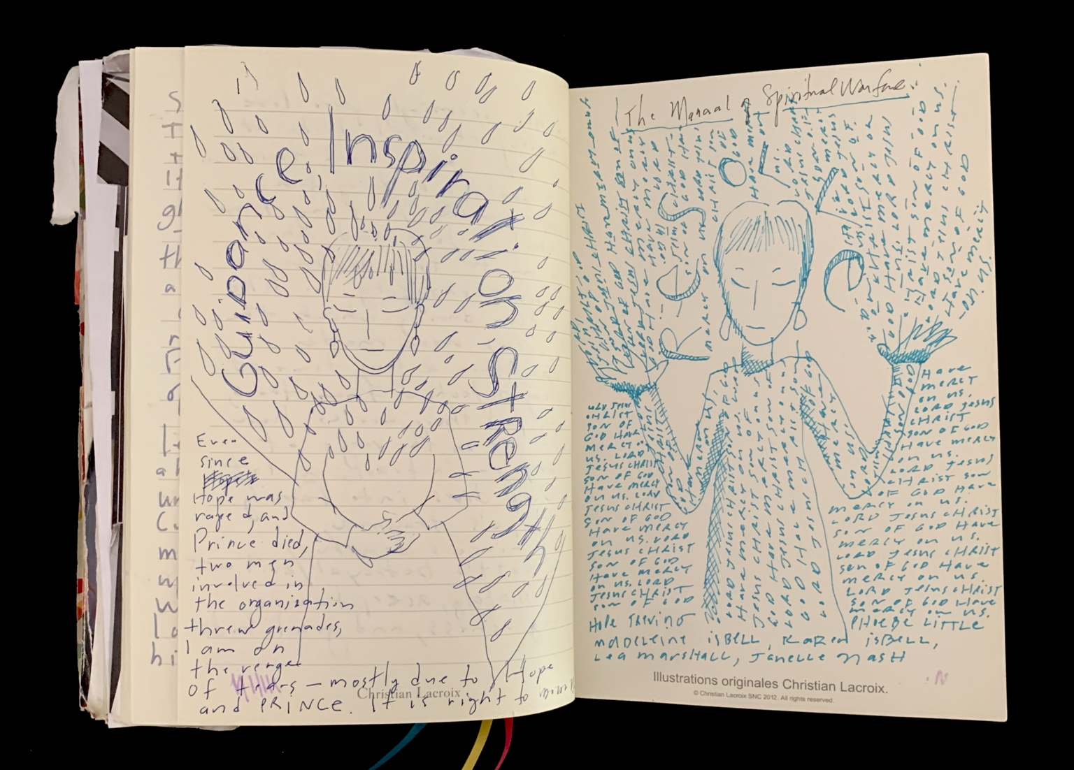 - Family; Parents; Grandparents; Maternal aunts and uncles; Childhood memories; Ghost busting; Revisionist history; Love; Forgiveness; Lingering ghosts; First pet; Pudgie the dog; Gift and loss; Ray of light extinguished; Grandmother’s life; Mother-daughter relationship; Hard work; Treasonous child; Reimagining childhood; Understanding; Devotion; Loyalty; Protection; Perspective; Kip Lott; Piece 24; Prayer pages; Mantram pages; Afiza; Mowgli; Hope Trevino; Mauricio Navarro; Diane Van Buren; Artist attack; Rape; Grandma Asche; Grandpa Asche; Grandma Blessen; Living room conflict; Tension; Arguments; Yelling; Smoking; Drinking; Super collider metaphor; Bringing color; Childhood letter; Betrayal; Friendship loss; Grandma Asche’s offspring; Time off; Pets; Animals; 1964–2016; 2016 elections; Political noise; Centering chart; Grounding; April 21, 2016; Prince dies