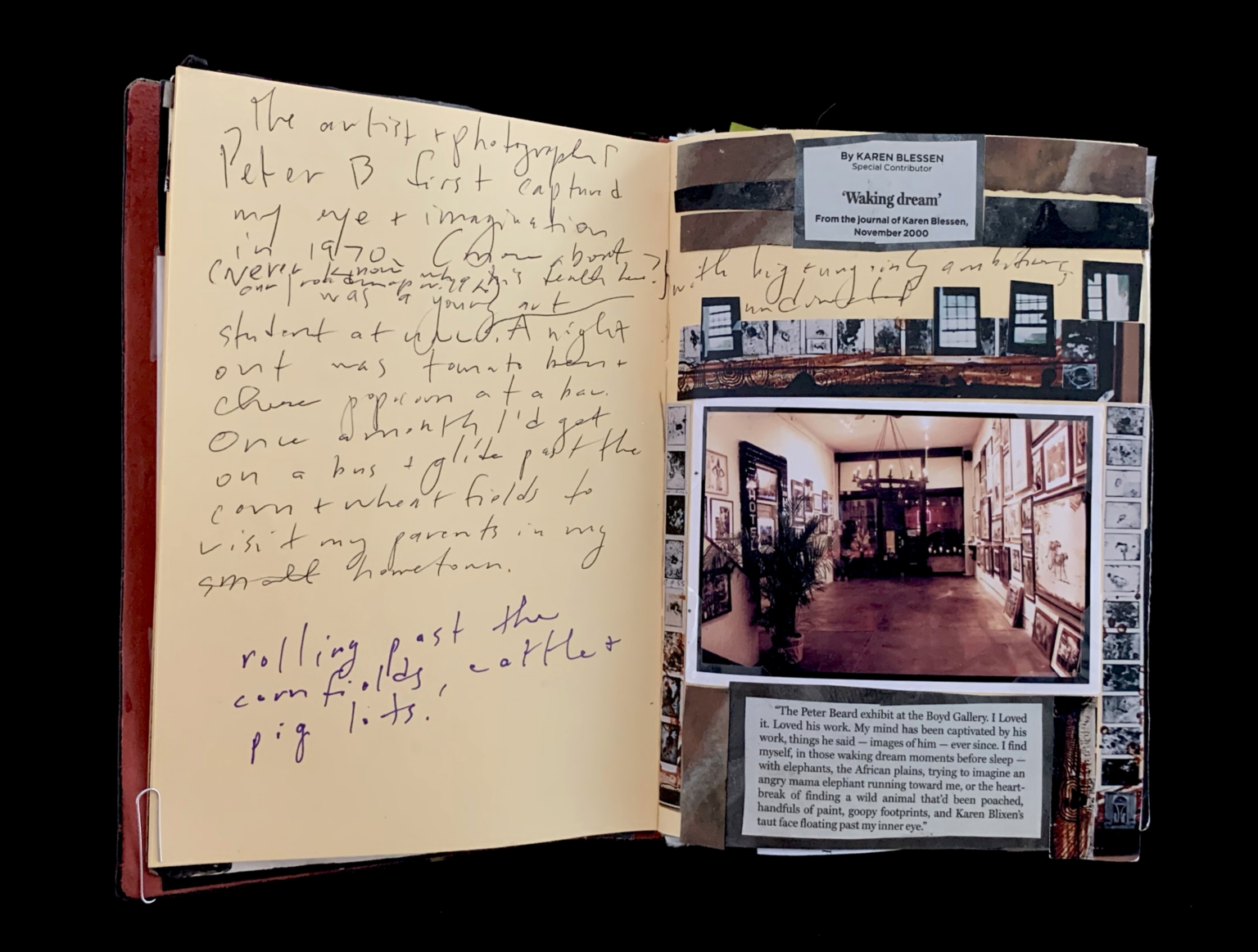 The Peter Beard exhibit at the Boyd Gallery. I loved it. Loved his work. My mind has been captivated by his things for said – images of him – ever since. I find myself, in the middle of a conversation, talking about him. With elephants, the African plains, trying to imagine an elephant's face. I was so excited to see the first break of finding a wild animal that had been poached. Tears, pain, goopy footprints, and Karen Blessen's face floating past my inner eye. - Rights