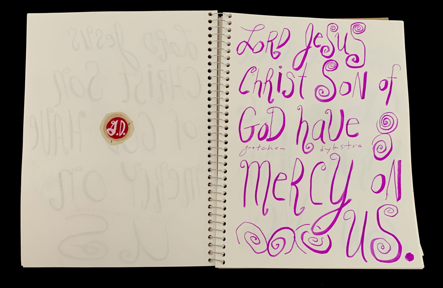- Beginning of the pandemic; Kelly; Online retreat; Zoom retreat; Meditation center; Blue Mountain Center of Meditation; Tomales, California; Setu; Bridge; Post-65 chapter of life; Finite bodies; Eight Point program; Mantram; Jesus Prayer; “Lord Jesus Christ Son of God Have Mercy on Us”; Passage Meditation; 2005; Holy name; Immanuel Lutheran Church; Columbus, Nebraska; Church doctrine; Christ’s teachings; Hurricane Katrina; Suffering; Displacement; Dallas; Texas; Mercy; Ancient mantrams; Divine spirit; Covid-19; Lockdown; Stillness; Reflection; Mantram prayer; All living beings; Initials on pages; Right hand page; Prayer practice; Spiritual connection; Repetition; Contemplation; Sacred words