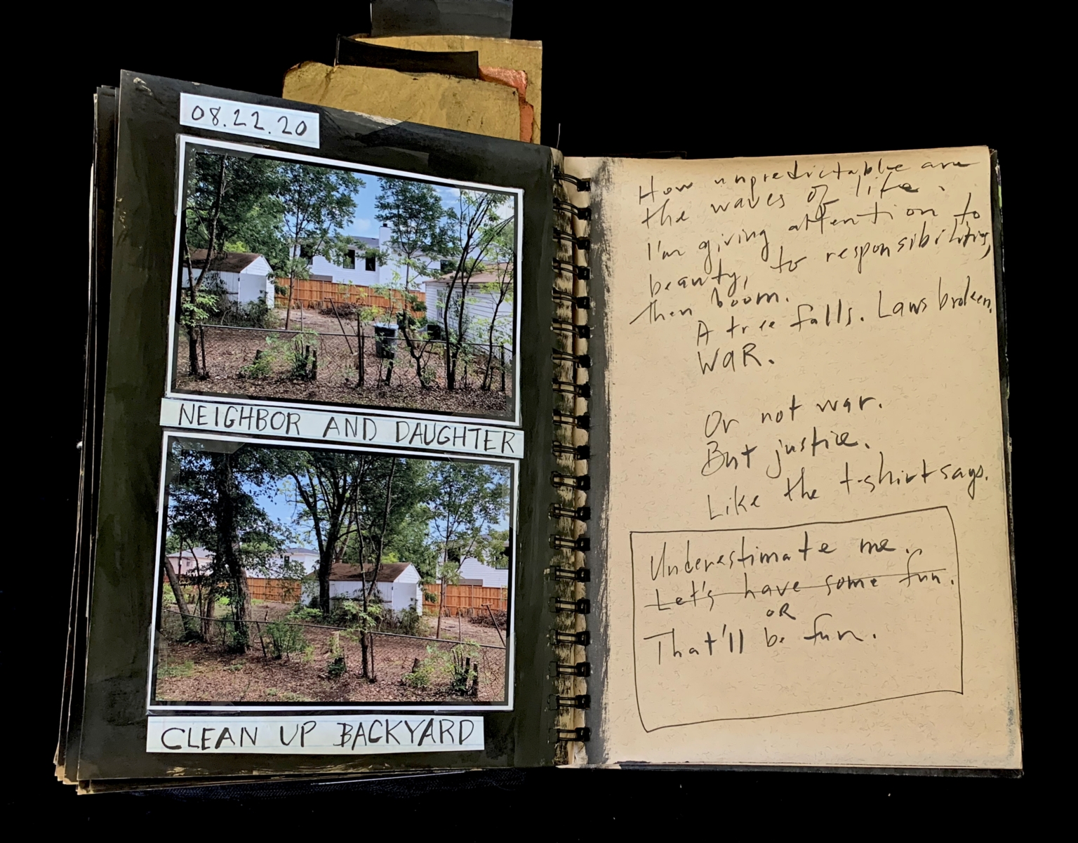 - Tangled wires; Woodpecker; Trees; Beauty; Destruction of nature; Parent-child responsibilities; Let Me Walk in Beauty; Lakota Sioux; Chief Yellow Lark; Public Parks; Trust for Public Land; Creative process; Flowers; Loss; Black veil collage; Covid-19; Candy Dickenson Becher; Drop metaphor; Gretchen Dykstra; Double mastectomy; Dream of parents; Breast cancer; God laughs at plans; 29 Pieces planning; Cardinals; Cardinal collages; Sibyl Dana Reynolds; Institutional breakdowns; BLM; BLM collage; Parental meditations; Potatoes and pride; Life stages; Gretchen’s kimono; Friendships; Past and present; Neighbor tree dispute; Manifest or dissolve; Contagious grace; Commodification of beauty