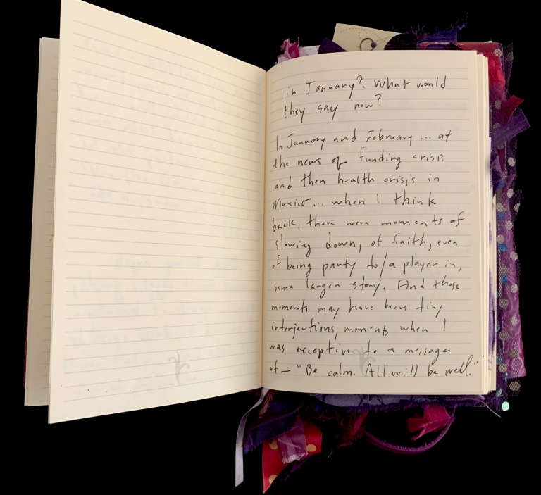 - Purple; Prince; June 7; Blank journal; Barnes and Noble; 2016–2017; Trump election; 29 Pieces; Funding crisis; Board realities; Come to Jesus moment; Remote work; Gut punches; Dana moves; Emotional loss; Political uncertainty; Life necessities; Calling the angels; Unshakeable faith; State of Contentment; Sacred feminine; Tramadol; Pleasing Daddy; Embodying HER; Yayoi Kusama; Frida Kahlo; Missing Barbara Boster; Mantrams for Trump; Anger chart; Charlottesville; Compassionate Path; Critical Path; Chronic hip pain; Angst and joy; Friendship and forgiveness; NYC trip; Times Square BID; Women artists; Left vs. right hand writing; No backyard studio