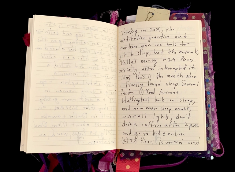 - Purple; Prince; June 7; Blank journal; Barnes and Noble; 2016–2017; Trump election; 29 Pieces; Funding crisis; Board realities; Come to Jesus moment; Remote work; Gut punches; Dana moves; Emotional loss; Political uncertainty; Life necessities; Calling the angels; Unshakeable faith; State of Contentment; Sacred feminine; Tramadol; Pleasing Daddy; Embodying HER; Yayoi Kusama; Frida Kahlo; Missing Barbara Boster; Mantrams for Trump; Anger chart; Charlottesville; Compassionate Path; Critical Path; Chronic hip pain; Angst and joy; Friendship and forgiveness; NYC trip; Times Square BID; Women artists; Left vs. right hand writing; No backyard studio
