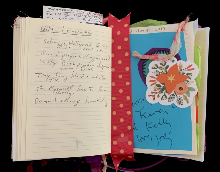 - Purple; Prince; June 7; Blank journal; Barnes and Noble; 2016–2017; Trump election; 29 Pieces; Funding crisis; Board realities; Come to Jesus moment; Remote work; Gut punches; Dana moves; Emotional loss; Political uncertainty; Life necessities; Calling the angels; Unshakeable faith; State of Contentment; Sacred feminine; Tramadol; Pleasing Daddy; Embodying HER; Yayoi Kusama; Frida Kahlo; Missing Barbara Boster; Mantrams for Trump; Anger chart; Charlottesville; Compassionate Path; Critical Path; Chronic hip pain; Angst and joy; Friendship and forgiveness; NYC trip; Times Square BID; Women artists; Left vs. right hand writing; No backyard studio