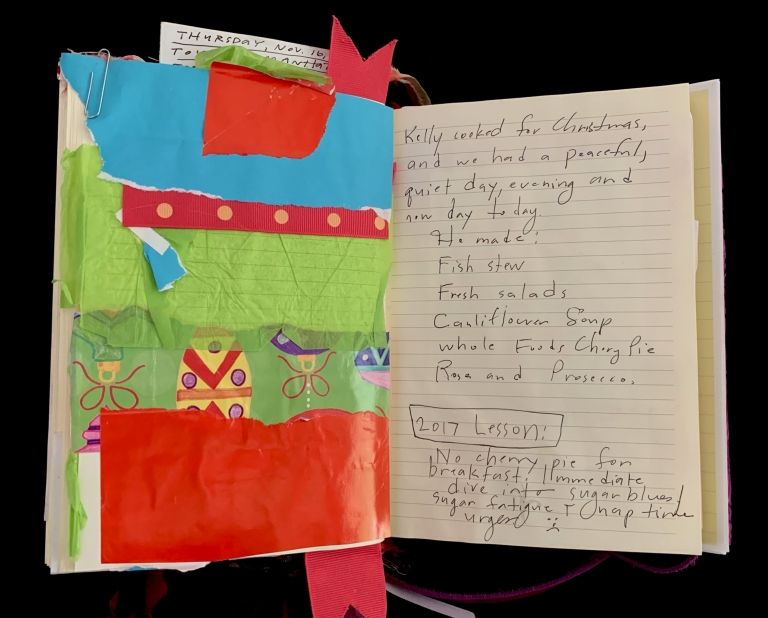 - Purple; Prince; June 7; Blank journal; Barnes and Noble; 2016–2017; Trump election; 29 Pieces; Funding crisis; Board realities; Come to Jesus moment; Remote work; Gut punches; Dana moves; Emotional loss; Political uncertainty; Life necessities; Calling the angels; Unshakeable faith; State of Contentment; Sacred feminine; Tramadol; Pleasing Daddy; Embodying HER; Yayoi Kusama; Frida Kahlo; Missing Barbara Boster; Mantrams for Trump; Anger chart; Charlottesville; Compassionate Path; Critical Path; Chronic hip pain; Angst and joy; Friendship and forgiveness; NYC trip; Times Square BID; Women artists; Left vs. right hand writing; No backyard studio