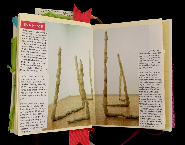 - Purple; Prince; June 7; Blank journal; Barnes and Noble; 2016–2017; Trump election; 29 Pieces; Funding crisis; Board realities; Come to Jesus moment; Remote work; Gut punches; Dana moves; Emotional loss; Political uncertainty; Life necessities; Calling the angels; Unshakeable faith; State of Contentment; Sacred feminine; Tramadol; Pleasing Daddy; Embodying HER; Yayoi Kusama; Frida Kahlo; Missing Barbara Boster; Mantrams for Trump; Anger chart; Charlottesville; Compassionate Path; Critical Path; Chronic hip pain; Angst and joy; Friendship and forgiveness; NYC trip; Times Square BID; Women artists; Left vs. right hand writing; No backyard studio