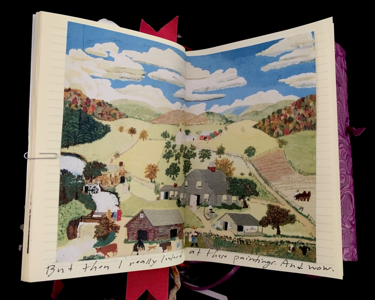 - Purple; Prince; June 7; Blank journal; Barnes and Noble; 2016–2017; Trump election; 29 Pieces; Funding crisis; Board realities; Come to Jesus moment; Remote work; Gut punches; Dana moves; Emotional loss; Political uncertainty; Life necessities; Calling the angels; Unshakeable faith; State of Contentment; Sacred feminine; Tramadol; Pleasing Daddy; Embodying HER; Yayoi Kusama; Frida Kahlo; Missing Barbara Boster; Mantrams for Trump; Anger chart; Charlottesville; Compassionate Path; Critical Path; Chronic hip pain; Angst and joy; Friendship and forgiveness; NYC trip; Times Square BID; Women artists; Left vs. right hand writing; No backyard studio