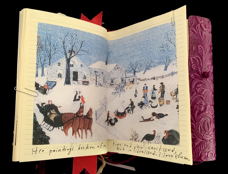 - Purple; Prince; June 7; Blank journal; Barnes and Noble; 2016–2017; Trump election; 29 Pieces; Funding crisis; Board realities; Come to Jesus moment; Remote work; Gut punches; Dana moves; Emotional loss; Political uncertainty; Life necessities; Calling the angels; Unshakeable faith; State of Contentment; Sacred feminine; Tramadol; Pleasing Daddy; Embodying HER; Yayoi Kusama; Frida Kahlo; Missing Barbara Boster; Mantrams for Trump; Anger chart; Charlottesville; Compassionate Path; Critical Path; Chronic hip pain; Angst and joy; Friendship and forgiveness; NYC trip; Times Square BID; Women artists; Left vs. right hand writing; No backyard studio
