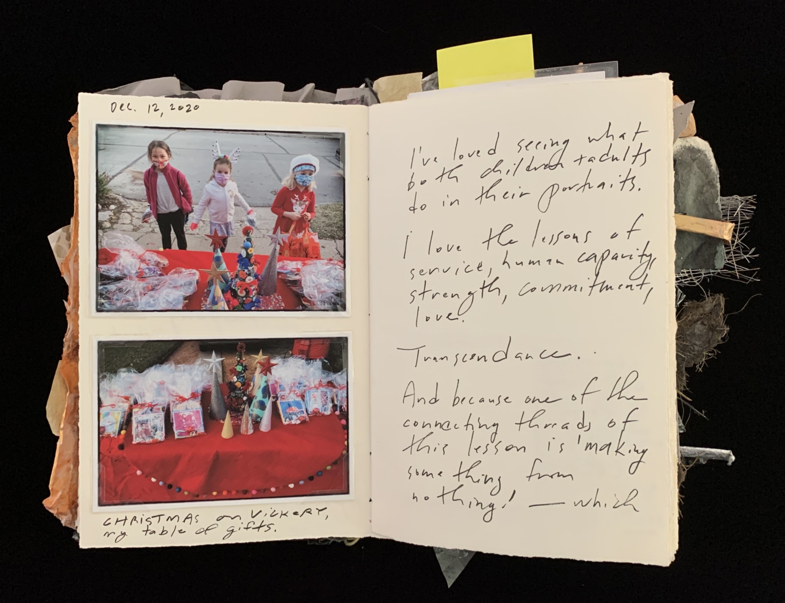 - Alchemy; Handmade journal; Terri Lenoir; Paper Arts; Covid-19 deaths; Trump lies; Illness of loved ones; Aging pets; Transcendence; Depression; Escape; Great Peacemakers Lesson; 69th birthday; Kelly’s card; 29 Pieces messaging; Love Knows No Distance; Quiet holiday; Kabir poems; Shakespeare bio; Jan. 6 insurrection; MLK essay; DMN 2003; SNL cold open; Lead to gold collage; American LOVE Project; Poppy Sundeen; THRIVE messaging; Valentine’s messaging; Super Power of love; Arctic freeze; Texas power outage; Randy Twaddle; Freeze photos; Lea Marshall; Tree of life; Calamities and trials; 10 years of journals; 2021 memes; $125K gift; Hudson Foundation; Weaving Your Name