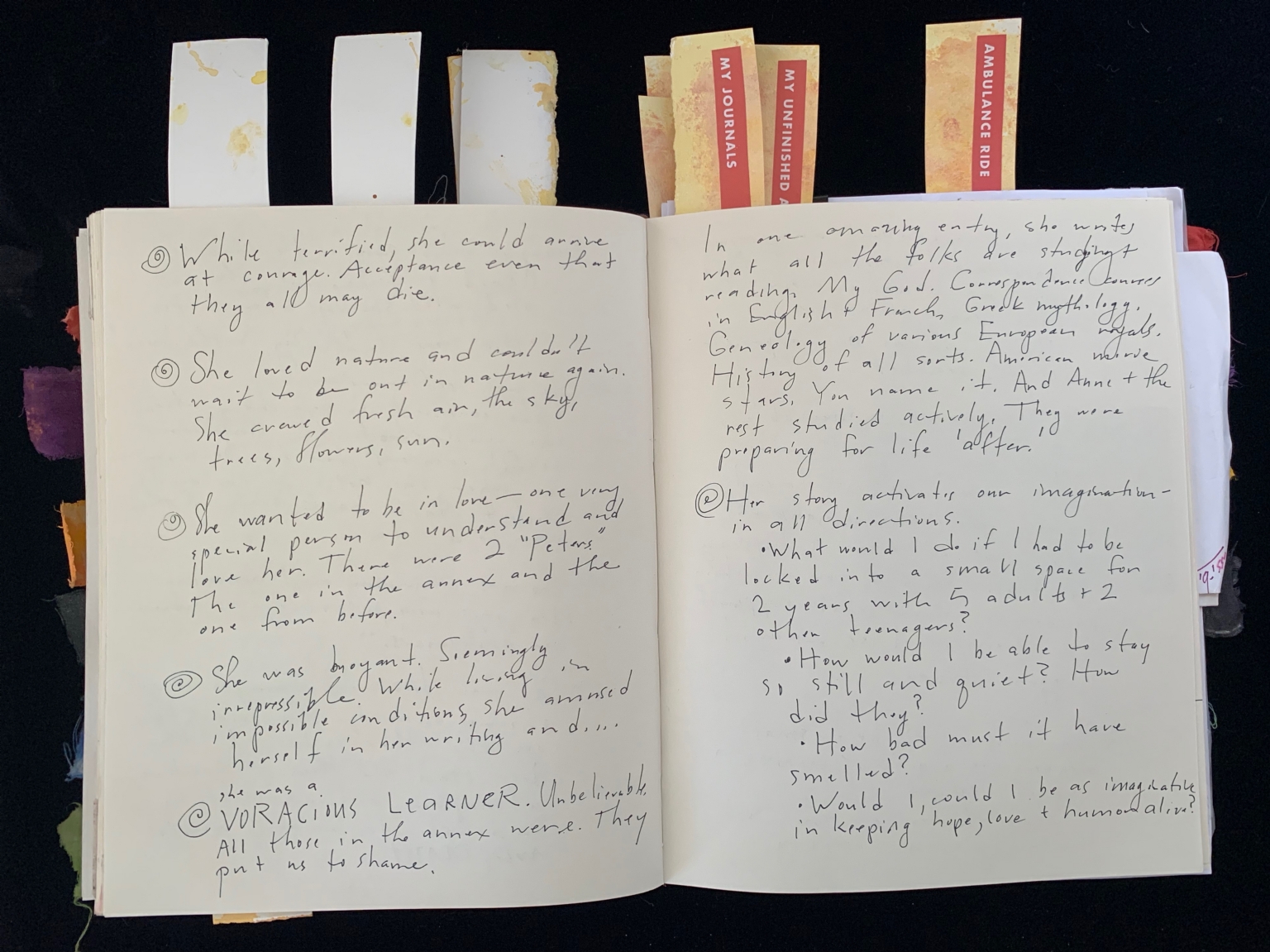 "In one moving entry, she writes what all the folks art studying + reading. My God. Correspondence converses in English + French, Greek mythology, Geneology of various European royals, history of all sorts, American movie stars, You name it. And Anne + the rest studied actively. They were preparing for a life after.