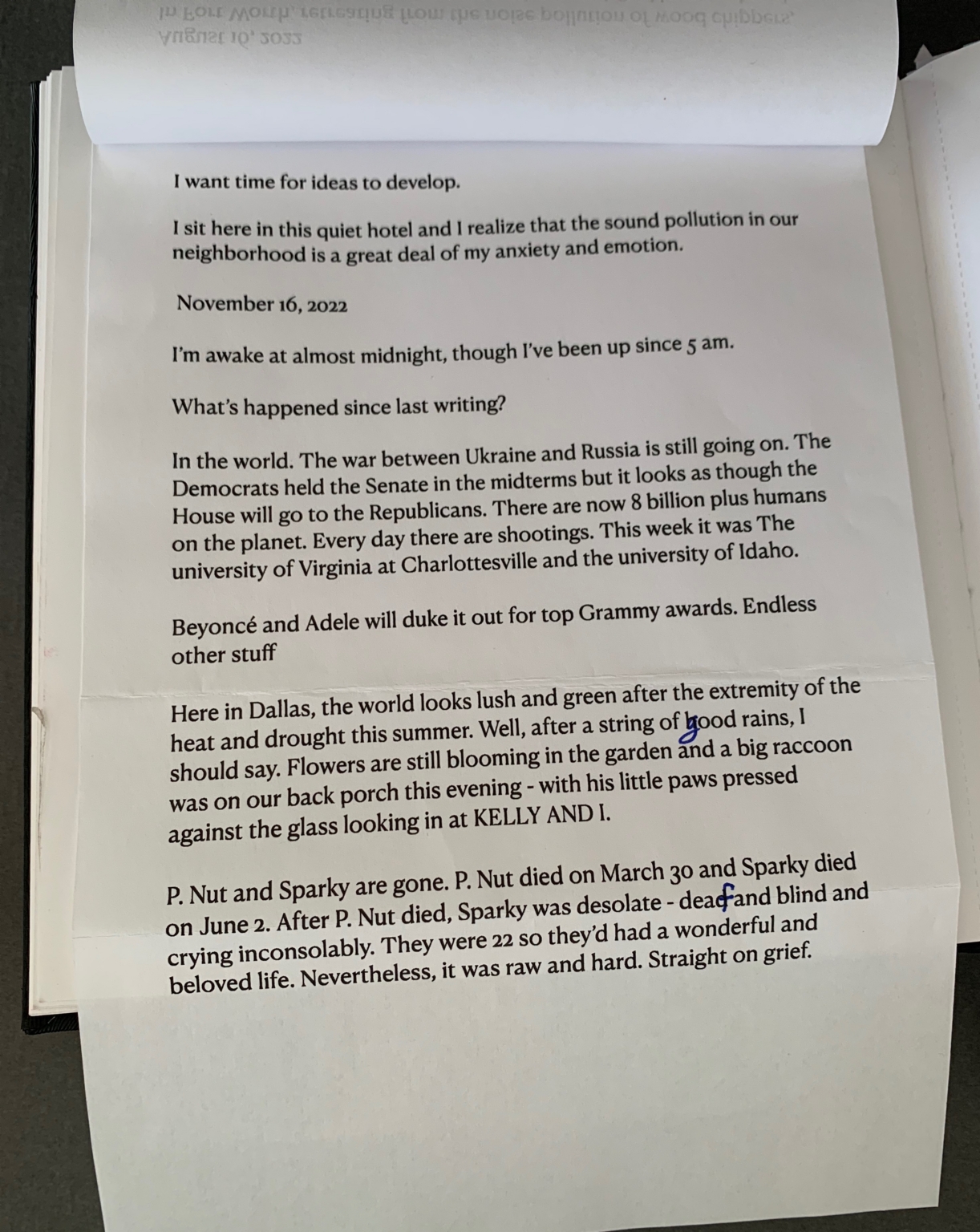 - The page is a handwritten journal entry with no artwork, photos, or doodles. The layout is simple, with text aligned to the left. The page appears to be part of a larger journal, as there are other pages visible on either side.