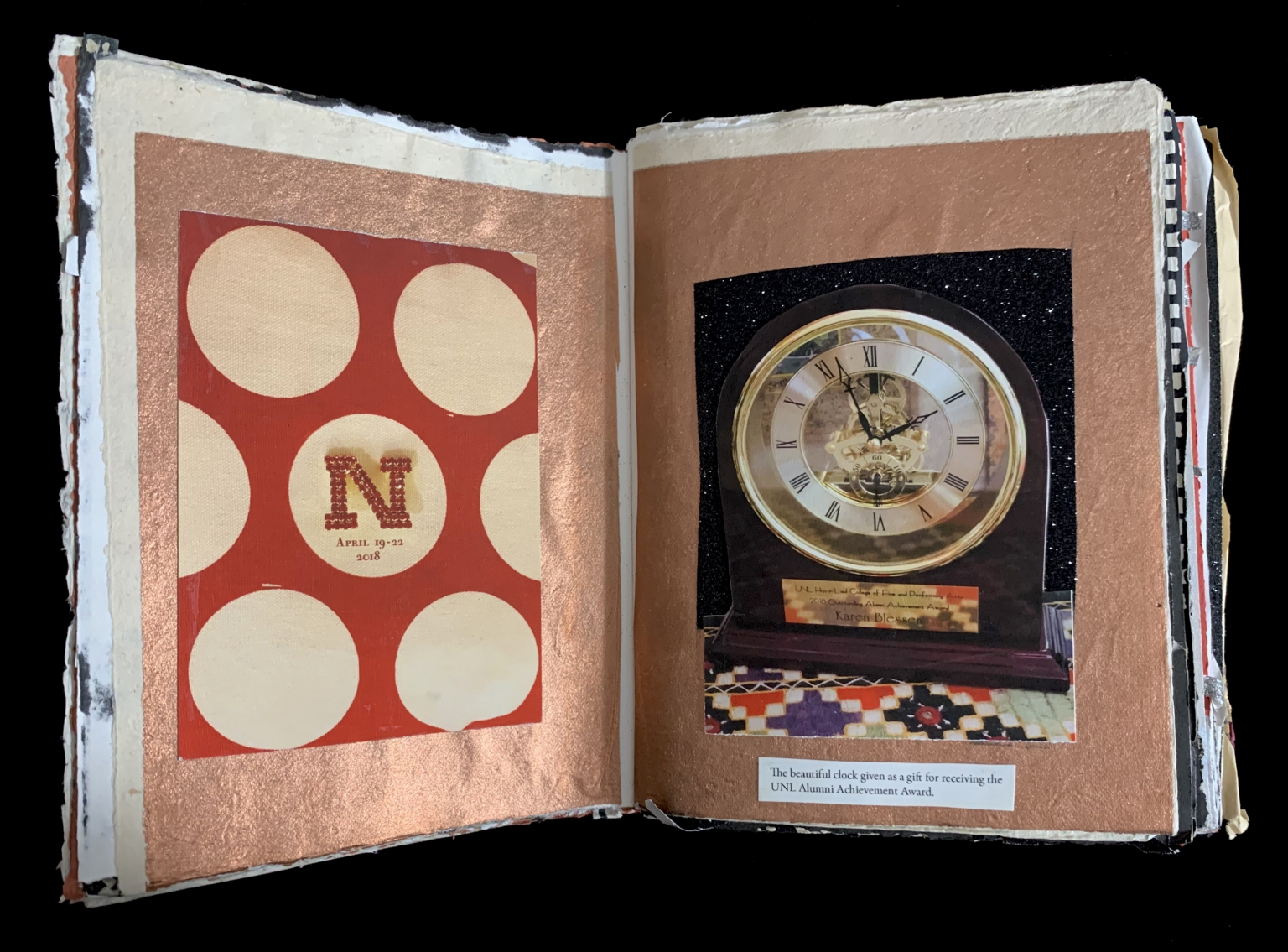 Right page below the clock: The beautiful clock given as a gift for receiving the UNL Alumni Achievement Award. - Rights
