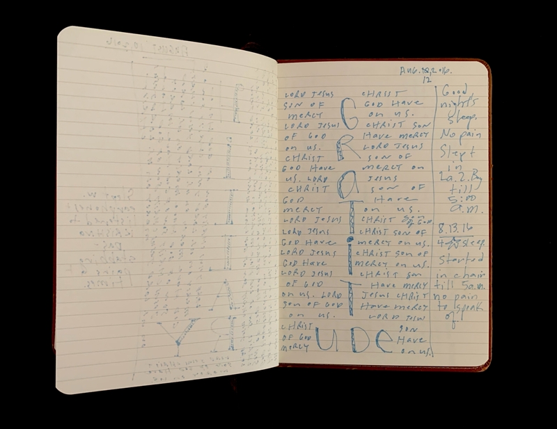 8.13.12 4 hr sleep," "Started in chair till 5 a.m.,No pain to speak of.