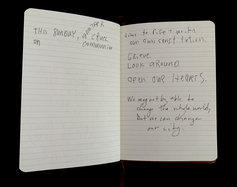 Time to rise & write our own constitution. Grieve. Look around. Open our hearts. We may not be able to change the whole world, but we can change our city.