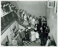 Members of Alpha Phi gather for a pinning ca. 1950