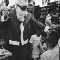 US Military Christmas event Bev Keever holds a young Vietnamese child in her arms.