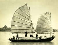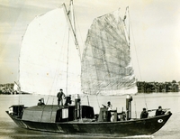 Original caption: "Operation 'Junction City,' Vietnam - Armored Cavalry Assault Vehicles (ACAV's) of the 11th Armored Calvary Regiment prowl for Viet Cong troops in War Zone C during the fourth day of Operation 'Junction City,' Feb 26. The modified Armored Personnel Carrier are flanked by M60 machineguns and fire a .50 caliber machinegun forward. The fast moving, fast firing ACAV's carry a combat ready squad of Army troops, and have yet to be bested in a fight against enemy forces in Vietnam." Three tanks with soldiers riding on them drive through a foggy or dusty meadow. There is a forest in the background.