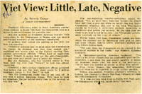 Original title: "victory", Keever's title: "'As the Military War Grows Bigger, the Communusts' Political War Grows Hotter', Saigon Businessman Says", Article about American calculations about whether to try for peace treaties or military victory, for the New York Herald Tribune
