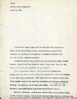 Letter from Beverly Keever to her New York Herald Tribune editor, Mr. Rosenfeld, about an article she was sending on a battle where Marine Corps supply tanks fell into a Viet Cong trap. The letter discusses the battle, Keever's sources, the Marine Corp's efforts to control the story and distract the journalists, other war correspondents who wrote about the baqttle, and the recent footage captured by CBS News correspondent Morley Safer of U.S. Marines burning Cam Ne village
