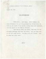 Original title: "The Plight of the Peasant", Keever's title: "Villagers describe the Communists as 'Mr.Liberators' in interview with U.S. Correspondent", article about an interview with a villiage peasant who has been caught in the middle of the war in South Vietnam