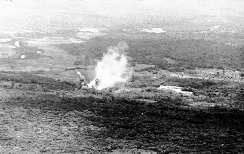 Vietnam War, 1961-1975; Landscapes; Aerial photographs; Operation Mastiff, 1966; Bombing, Aerial--Vietnam