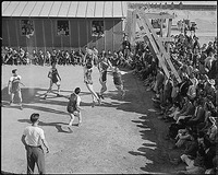 Poston, Arizona. New Year's Fair. A basketball game was held as part of the athletic events to commemorate the New Year. Caption and Photograph courtesy of The National Archives