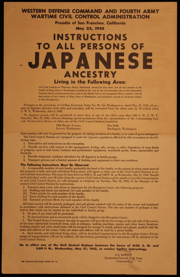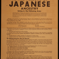 A notice created by the United States Army to remove Japanese-Americans from their home to concentration camps.