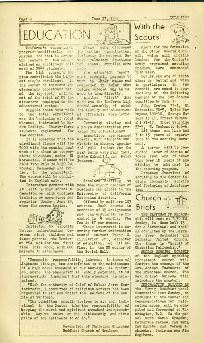 "Community responsibility, inherent in those of Japanese lineage, had contributed to the maintenance of a high moral standard in our society. At Tanforan, where the population is wholly Japanese, it is increasingly important that this standard be maintained.