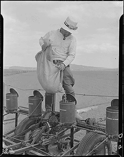 - Tule Lake Relocation Center, Newell, California. John Matsumoto, 28, evacuee truck farmer putting seed peas in a pea drill at the relocation center. Caption and Photograph courtesy of The National Archives