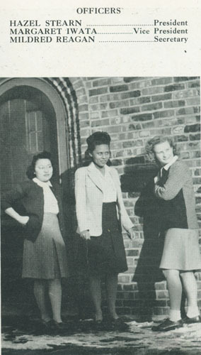 - Hazel Stearn, Margaret Iwata, and Mildred Reagan in front of the International House