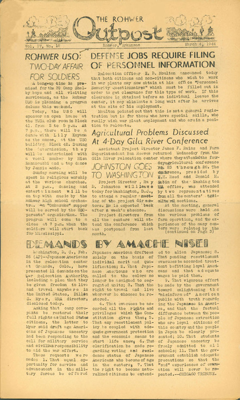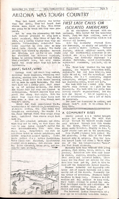 The newsletters also portray a sense of patriotism and loyalty to the United States. The emphasis on patriotism seen throughout the newsletters was a subtle way for the Japanese Americans to show that they were true Americans. They respected the place they lived as much as any other American and showed that through articles discussing flag ceremonies, supporting the first lady, and taking an interest in the rights promised to them by the Constitution of the United States. By showing the government that the internees were supportive of the United States, it made it more likely that they would be able to return to their homes once the war was over.